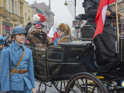 Odświętnie przyozdobionymi ulicami miasta ruszyła defilada. Na czele kroczył 2 pułk Szwoleżerów Rokitniańskich, za nimi orkiestra, następnie bryczka wraz z generałem oraz błękitna armia, dalej włodarze miasta, zaproszeni goście, uczniowie z okolicznych szkół i mieszkańcy Pelplina. Przechodnie zatrzymywali się by choć na chwilę zerknąć na ten piękny patriotyczny korowód, który zmierzał do katedry w Pelplinie. Pod katedrą na generała oczekiwał ks. proboszcz, który zaprosił do wnętrza świątyni. Po odsłuchaniu koncertu i wygłoszeniu przemowy Józef Haller opuścił katedrę, by podziwiać starcie Prusaków z Wojskiem Polskim. 2 Pułk Szwoleżerów Rokitniańskich wspierany przez halerczyków dokonał szarży na odziały pruskie i przegnał je z Pelplina. Tak zakończyły się obchody 98 rocznicy powrotu Pelplina do wolnej Polski.