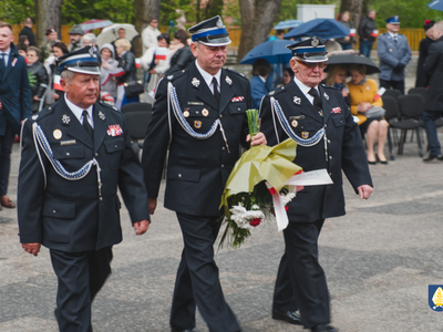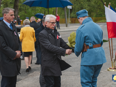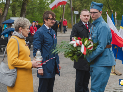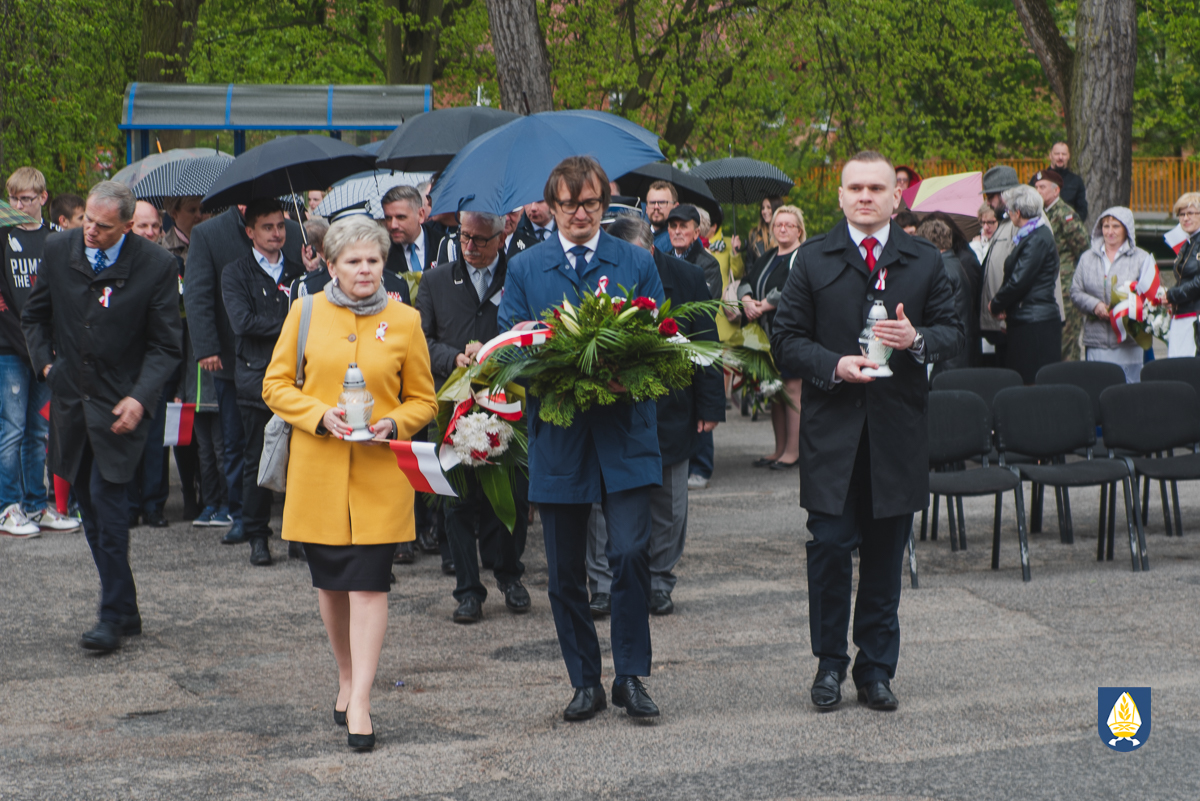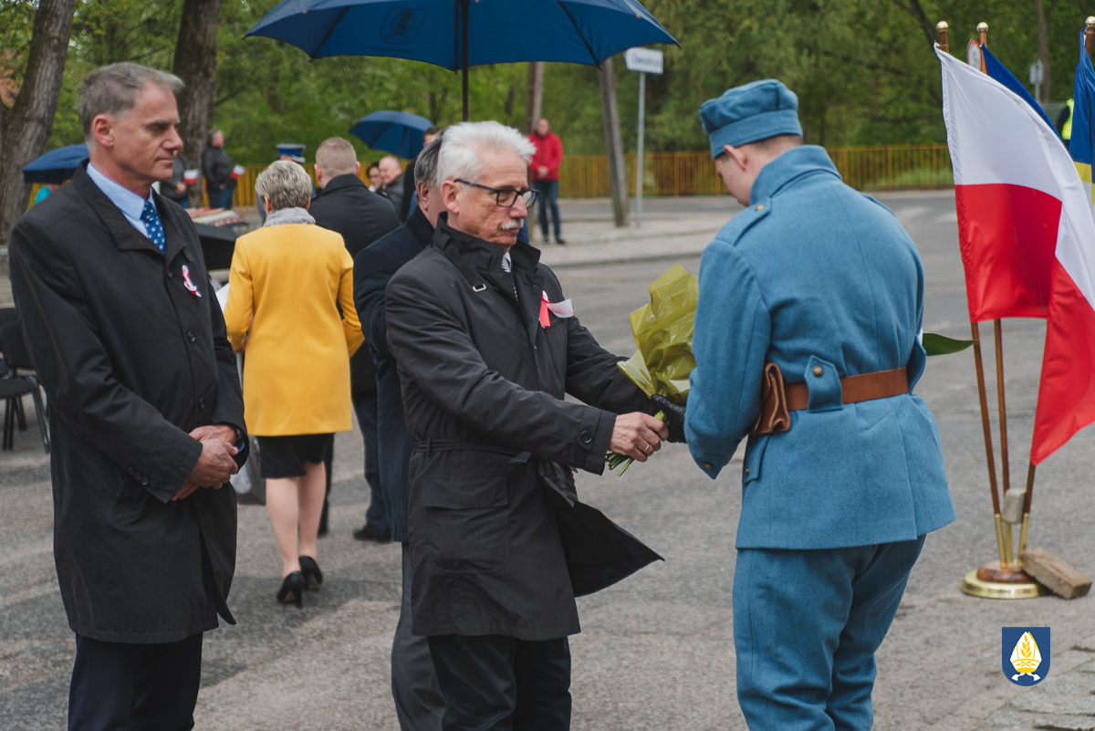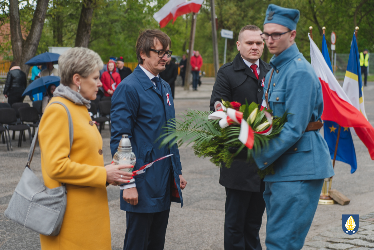 sztandarowych oraz grupy rekonstrukcyjnej uczestnicy uroczystości udali się pod pomnik przy Placu Wolności. Tam, odbyło się uroczyste podniesienie flagi państwowej Rzeczpospolitej Polskiej oraz wystąpienie Burmistrza Miasta i Gminy Pelplin Mirosława Chyły. Następnie po odśpiewaniu kilku patriotycznych pieśni zostały złożone wiązanki kwiatów przez obecne delegację m.in. z lokalnych instytucji, zakładów pracy, partii politycznych, stowarzyszeń, szkół oraz innych organizacji.