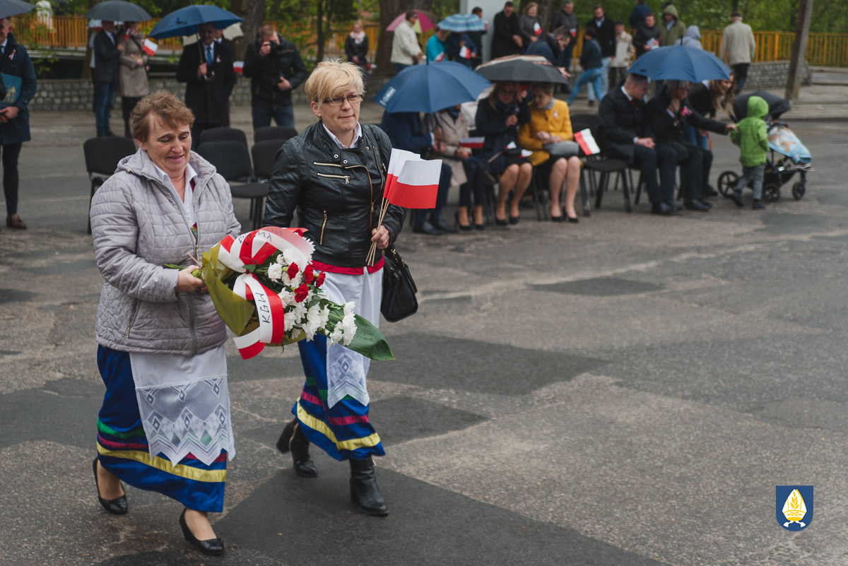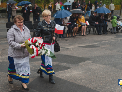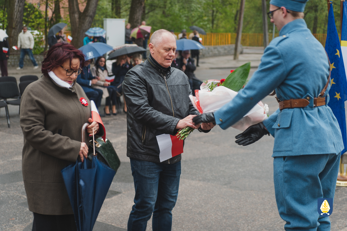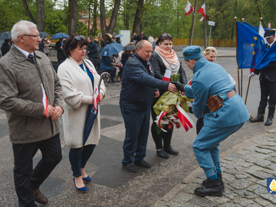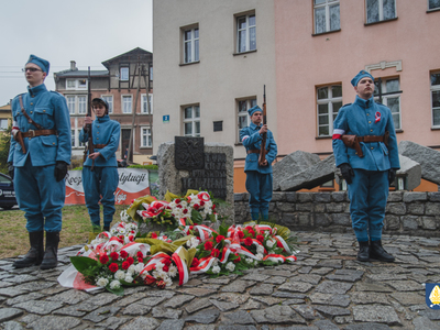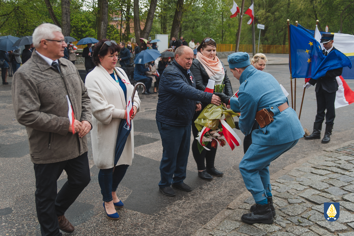 sztandarowych oraz grupy rekonstrukcyjnej uczestnicy uroczystości udali się pod pomnik przy Placu Wolności. Tam, odbyło się uroczyste podniesienie flagi państwowej Rzeczpospolitej Polskiej oraz wystąpienie Burmistrza Miasta i Gminy Pelplin Mirosława Chyły. Następnie po odśpiewaniu kilku patriotycznych pieśni zostały złożone wiązanki kwiatów przez obecne delegację m.in. z lokalnych instytucji, zakładów pracy, partii politycznych, stowarzyszeń, szkół oraz innych organizacji.