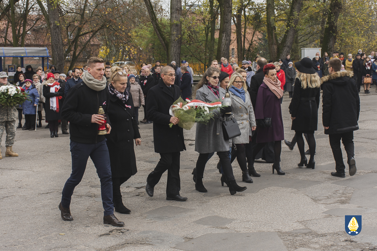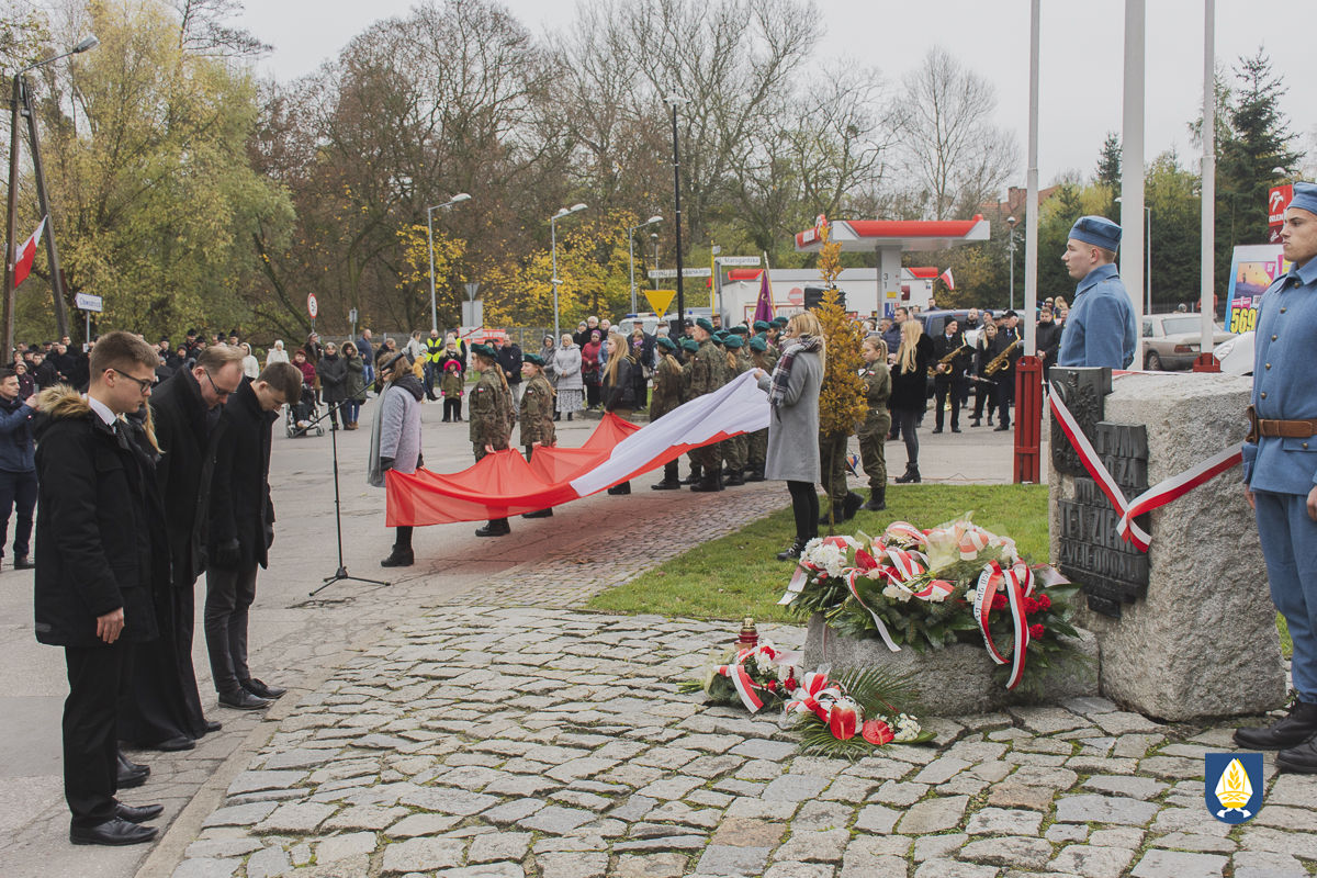 Tam, zgromadzeni przy pomniku przedstawiciele: szkół, organizacji pozarządowych, instytucji samorządowych, kościelnych oraz przedstawiciele firm odśpiewali hymn państwowy, a następnie głos zabrał Marszałek Józef Piłsudski. Po nim zabrał głos Burmistrz Miasta i Gminy Pelplin Mirosław Chyła, który w swoim przemówieniu podkreślił, że wolność należy pielęgnować, rozwijać i szanować. Uroczystości na placu wolności zakończyło złożenie przez przybyłe delegacje wiązanek kwiatów pod pomnikiem poległych w walce o wolność.