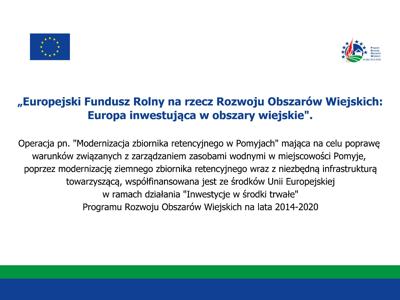 Podpisano umowę na modernizację zbiornika retencyjnego w Pomyjach. Łączna wartość inwestycji wynosi 561.119,85 zł, z czego 500.000 zł to dofinansowanie; prace zakończą się w maju 2025 r.