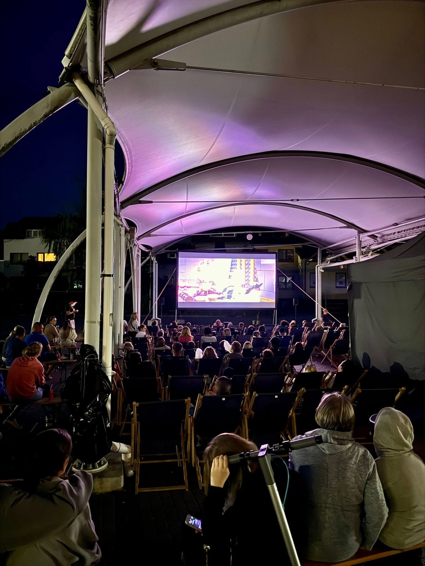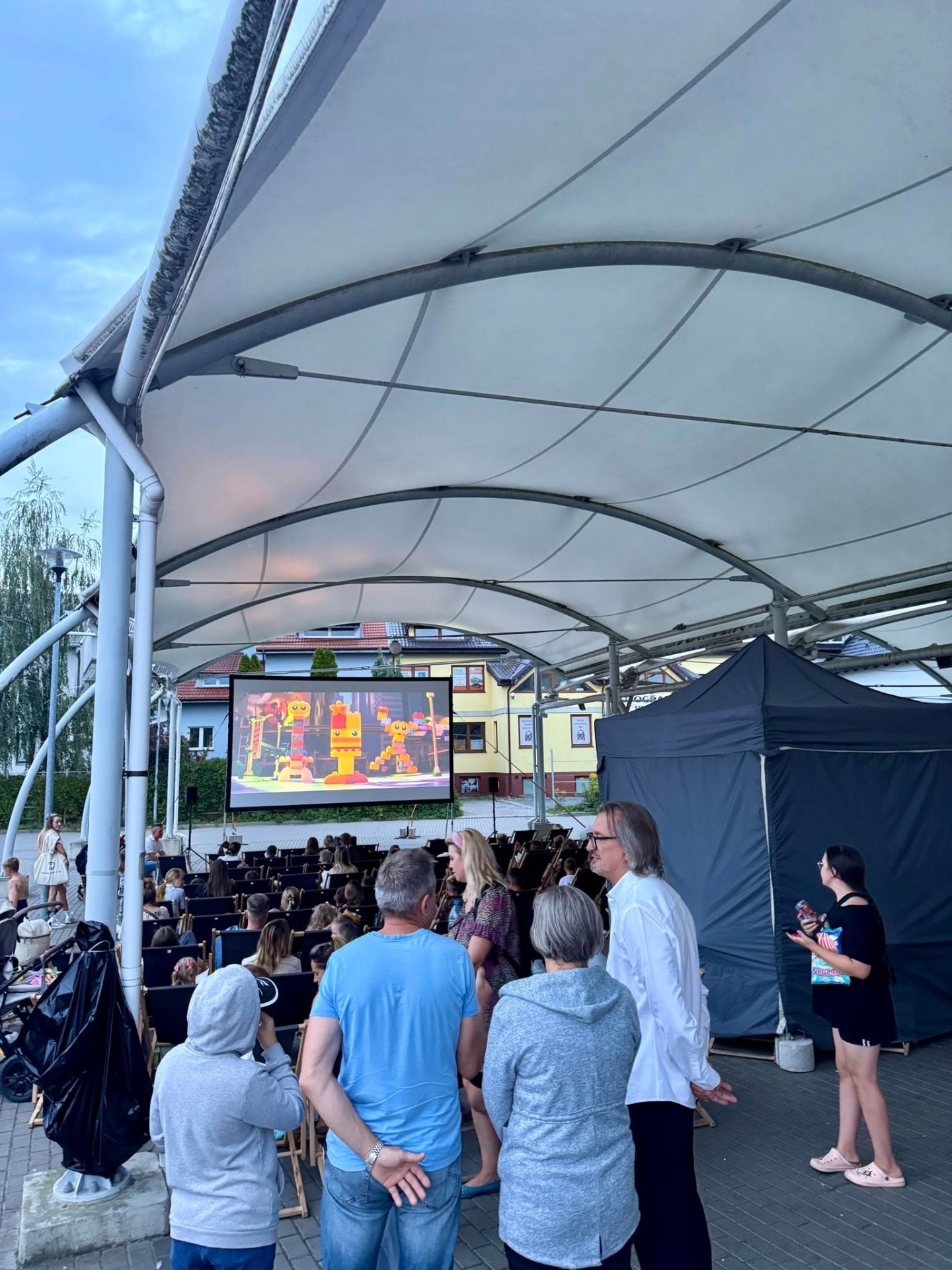 W Pelplinie zorganizowano wakacyjne kino plenerowe pod chmurką, które przyciągnęło wielu mieszkańców.