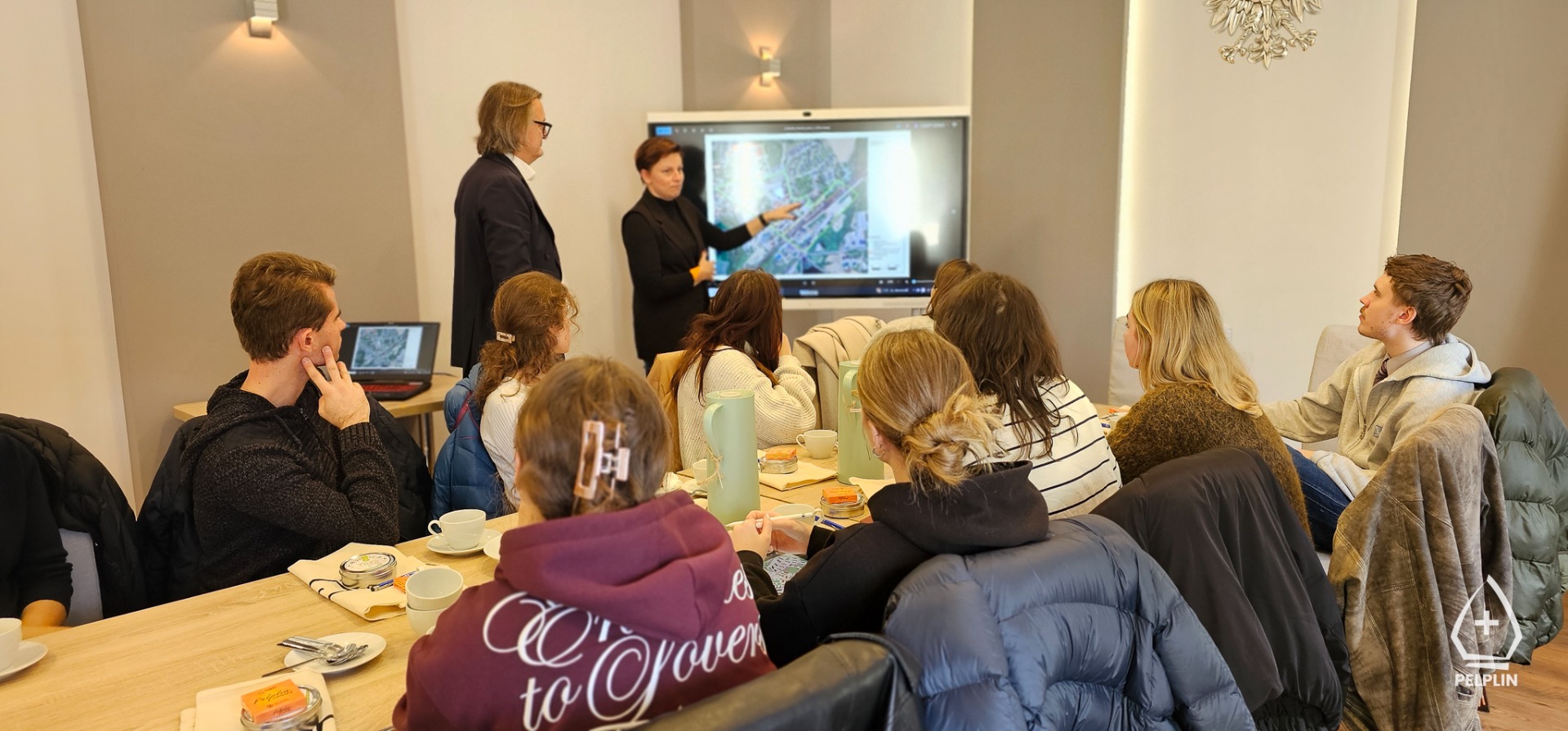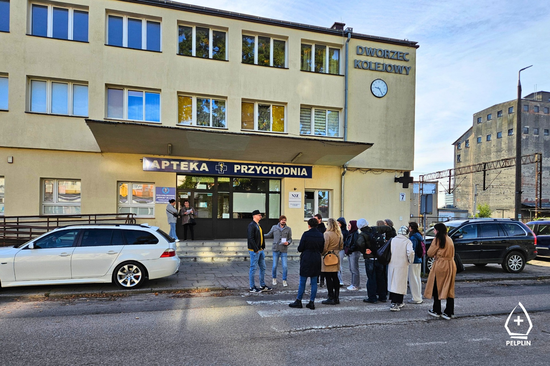 Punktualnie o 9:07 na dworcu PKP w Pelplinie zatrzymał się pociąg z Gdańska, którym na spacer studyjny przybyli studenci z Politechniki Gdańskiej. Opiekunami grupy są: dr inż. arch. Weronika Mazurkiewicz z Katedry Planowania Przestrzennego oraz dr hab. inż. arch. Katarzyna Zielonko-Jung z Katedry Projektowania Środowiskowego Politechniki Gdańskiej. Studentów po Pelplinie oprowadzili: Burmistrz Miasta i Gminy Pelplin Mirosław Chyła oraz jego zastępca Krzysztof Adamczyk, Kierownik Referatu Gospodarki Przestrzennej i Środowiska Anna Ziołkowska oraz inspektor w Referacie Rozwoju Karol Mielewczyk.