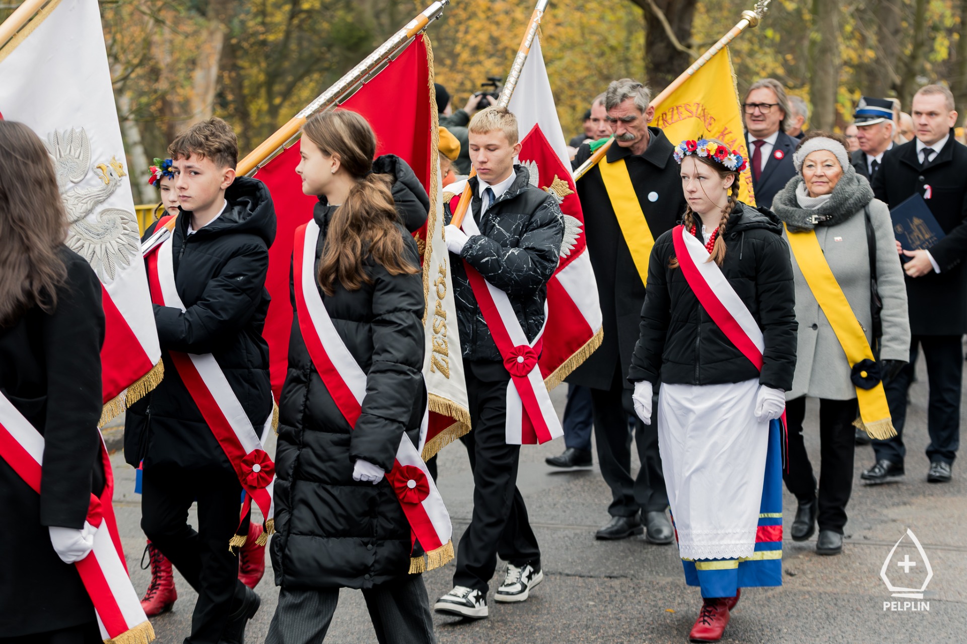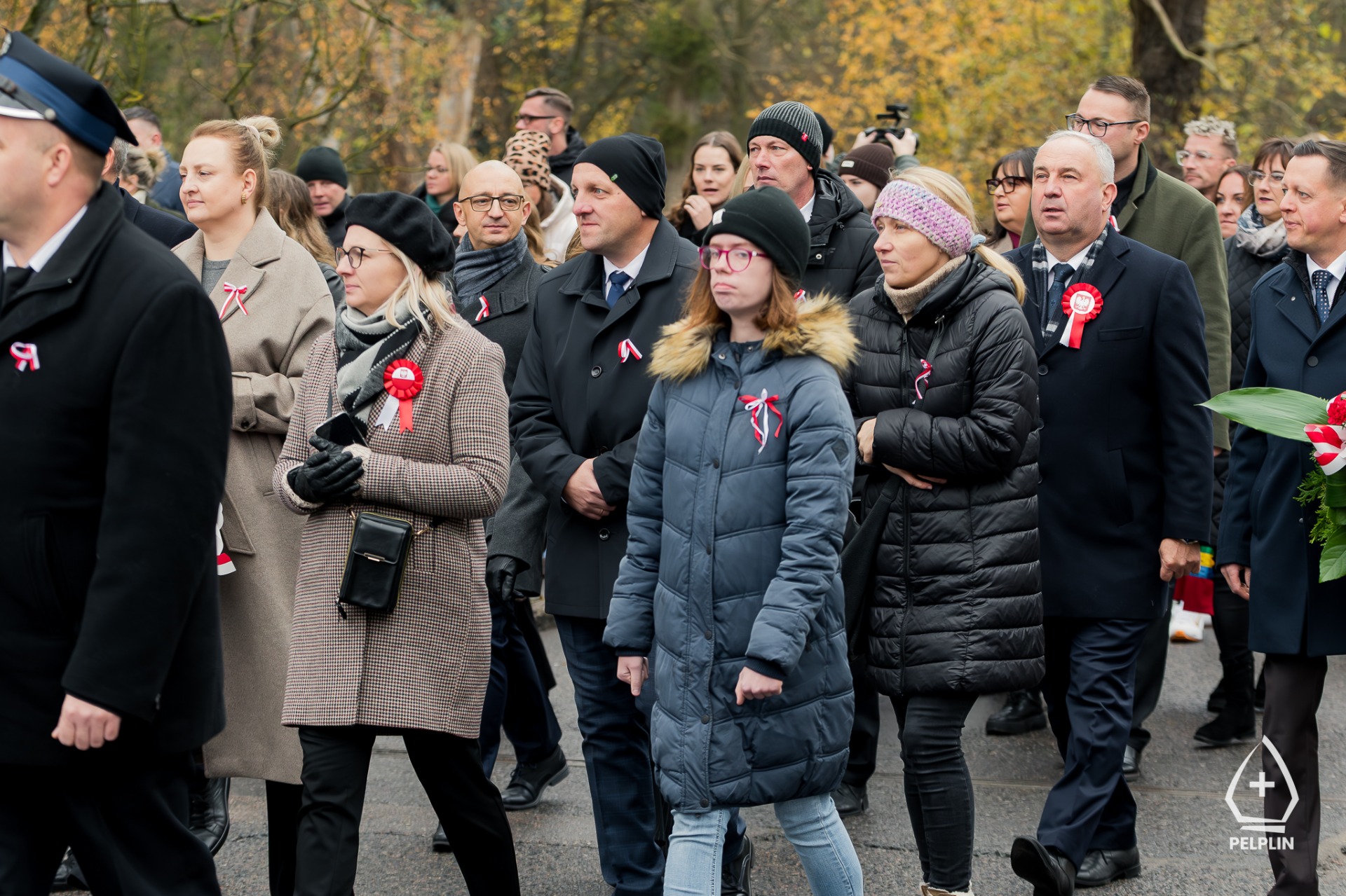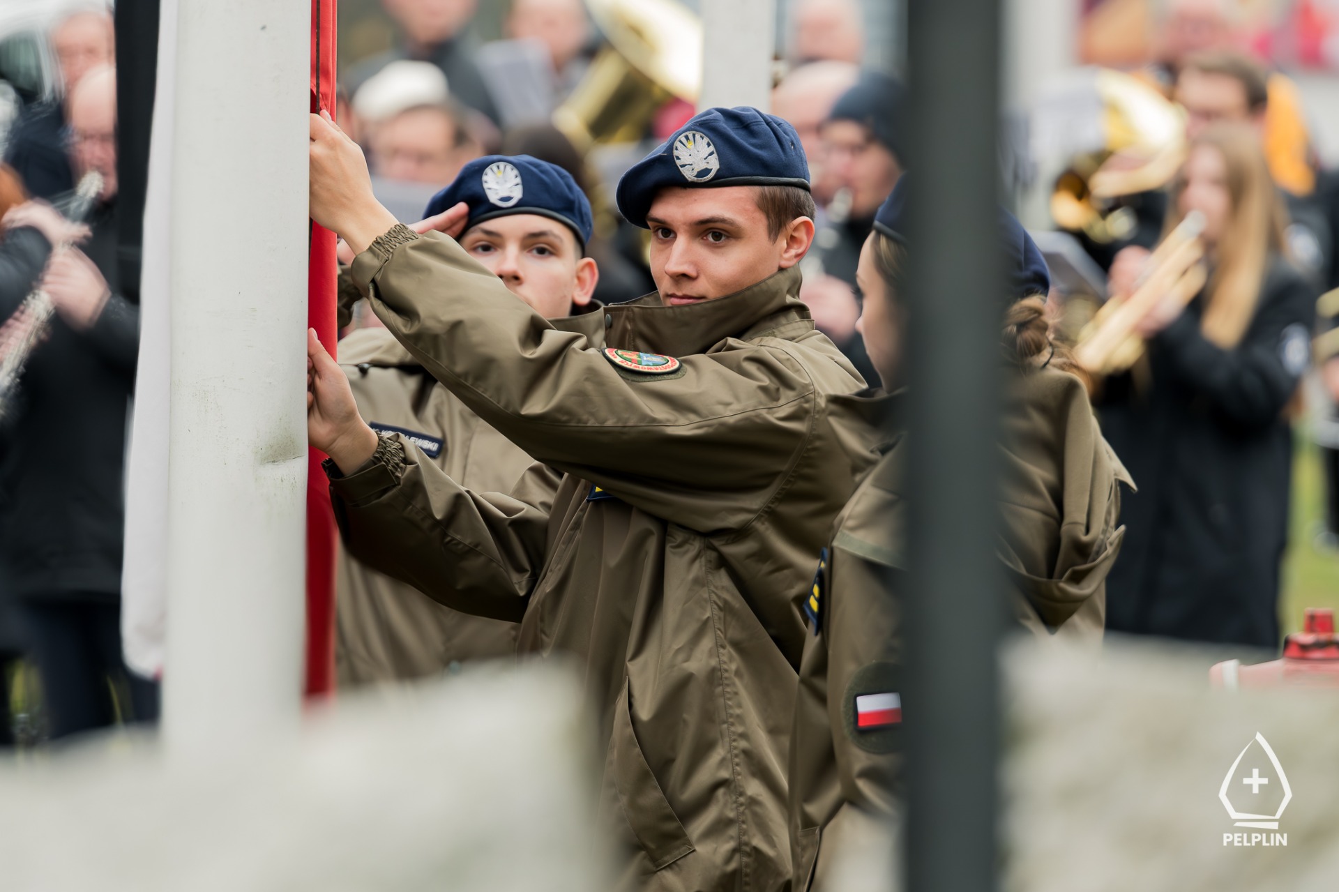 Po nabożeństwie uczestnicy przemaszerowali w biało-czerwonym korowodzie pod pomnik na Placu Wolności, gdzie odbyła się główna część uroczystości. Wspólne odśpiewanie hymnu narodowego i uroczyste podniesienie flagi państwowej nadały wydarzeniu wyjątkowego charakteru. Szczególnym momentem było ślubowanie uczniów klas wojskowych i mundurowych Liceum Ogólnokształcącego im. ks. Janusza St. Pasierba w Pelplinie, którzy z dumą i powagą przyrzekali służyć Ojczyźnie.