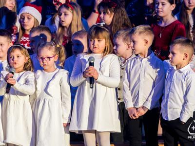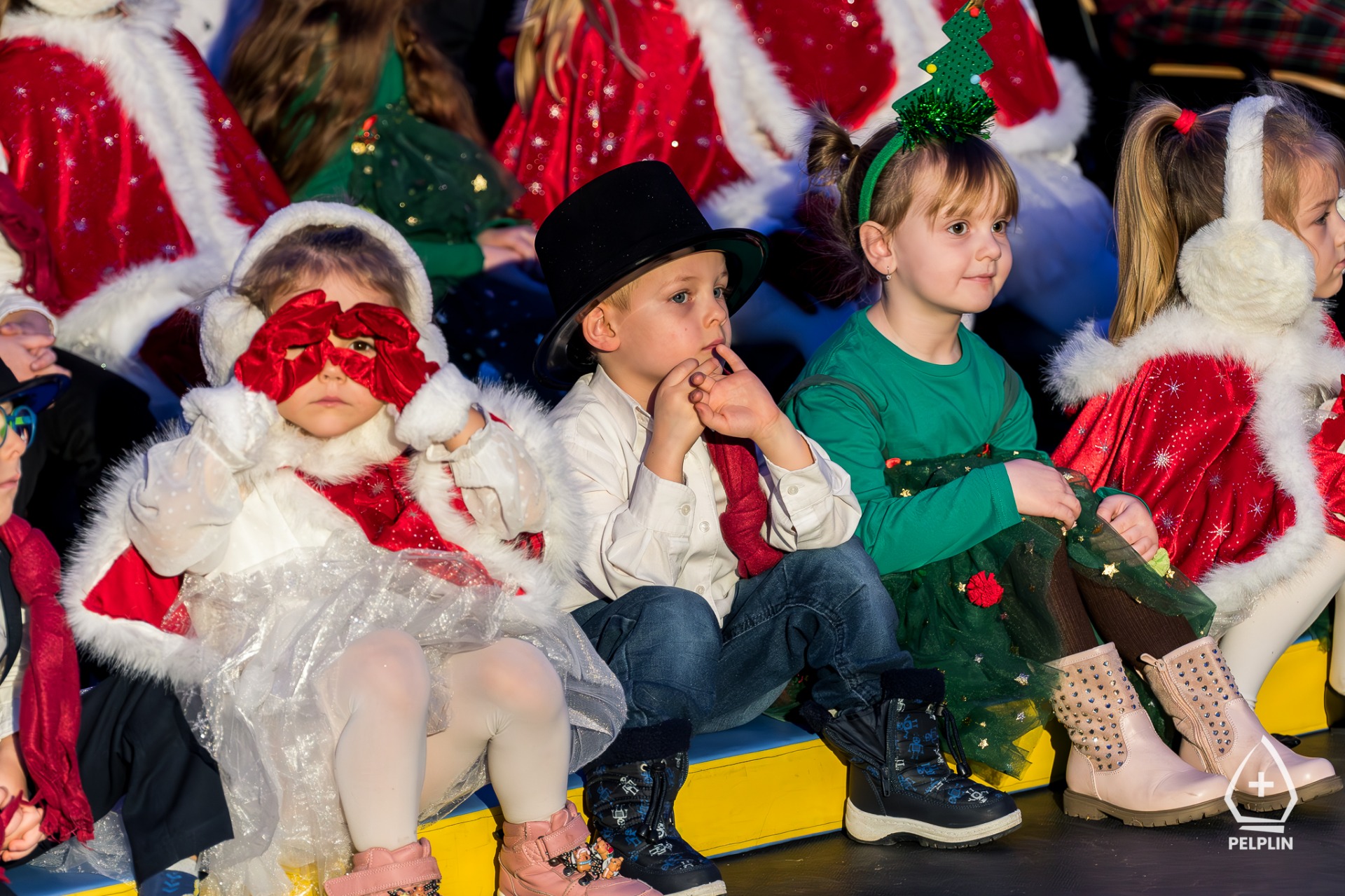 Pierwsze muzyczne akcenty zapewnił zespół Modraki OJTOTO, prezentując kolędy „Jawi się na świecie” oraz „Gore gwiazda”. Na scenie zaprezentowały się również dzieci z przedszkoli i szkół z terenu gminy Pelplin. Przedszkole nr 2 w Pelplinie wprowadziło publiczność w świąteczny nastrój utworami „Świeć gwiazdeczko” oraz „Wesołych Świąt”. Uczniowie ze Szkoły w Kulicach i Rudnie wykonali znane i lubiane kolędy, m.in. „GraJmy Panu”, „Gwiazda Jezusowi”, „Pójdźmy wszyscy” oraz „Przybieżeli do Betlejem”. Przedszkole w Rudnie zaprezentowało radosną przyśpiewkę świąteczną „Grajmy dana dana”. Szczególne wzruszenie wywołały występy najmłodszych z grupy Modraki oraz występ nauczycieli z Przedszkola nr 1 w Pelplinie, którzy wykonali poruszającą „Kolędę dla nieobecnych”. Publiczność z entuzjazmem przyjęła także występ zespołu z Tczewa, który zaprezentował utwory „Do domu czas na święta”, „Bambino Jezus” oraz „Kolęda Maryi”.