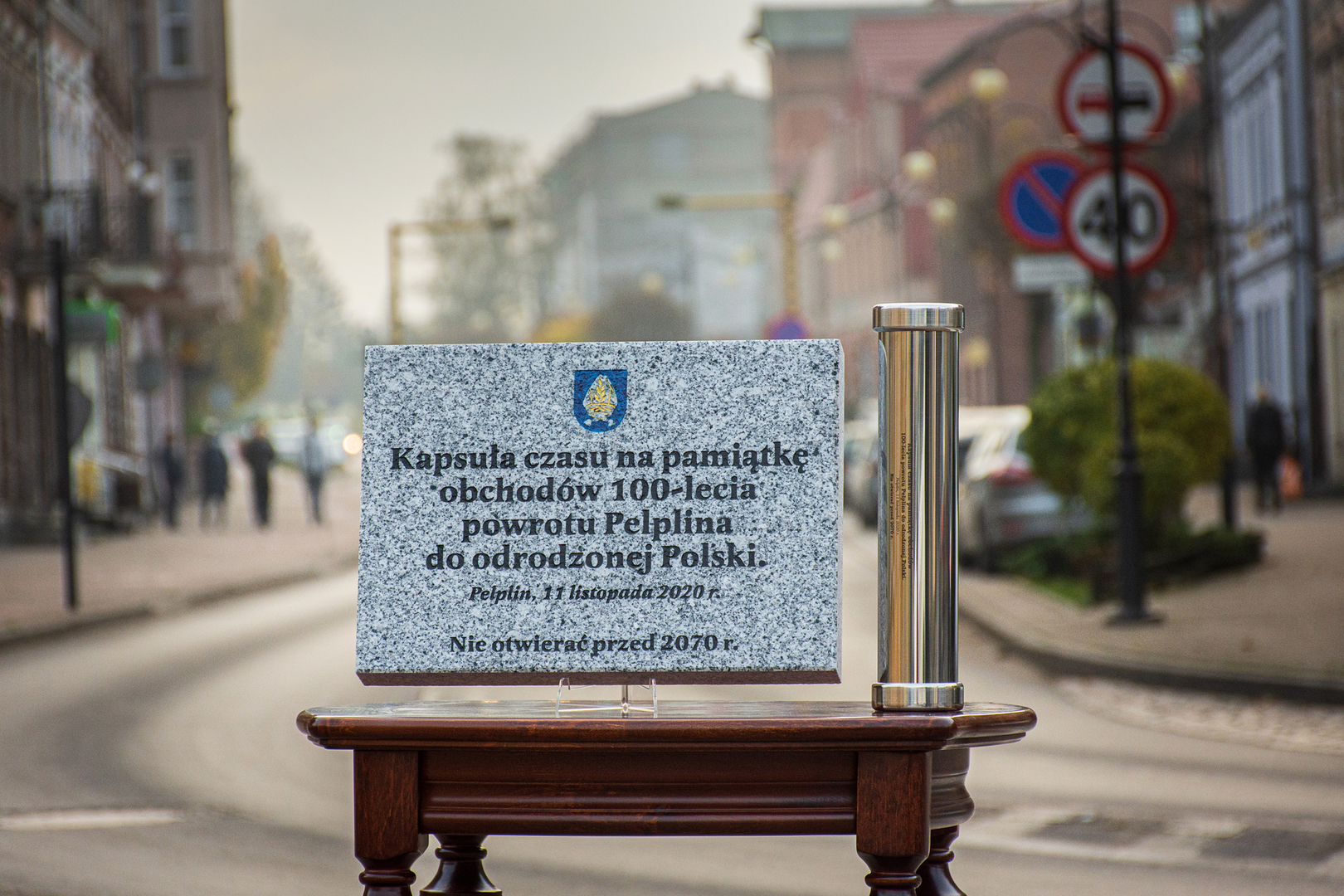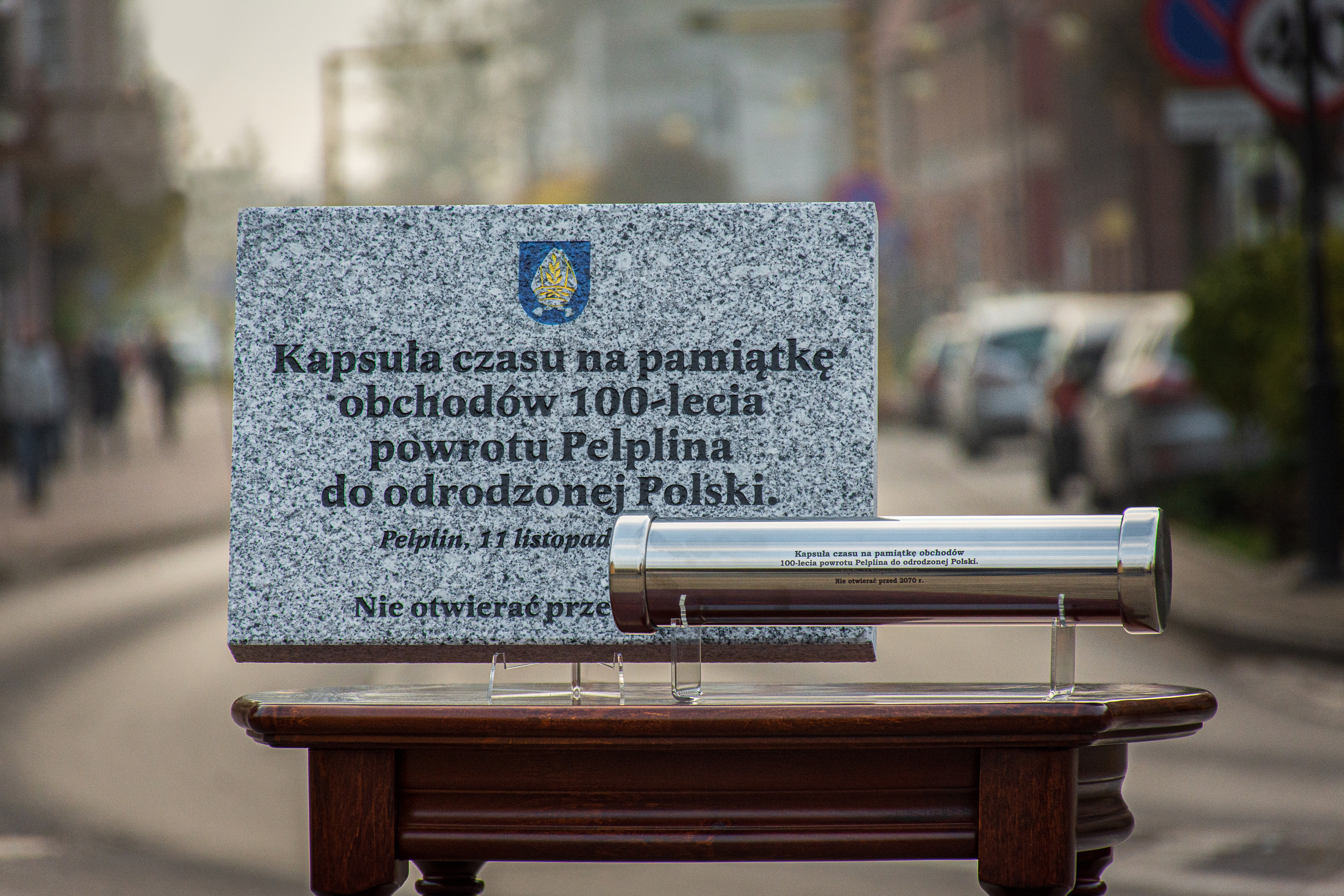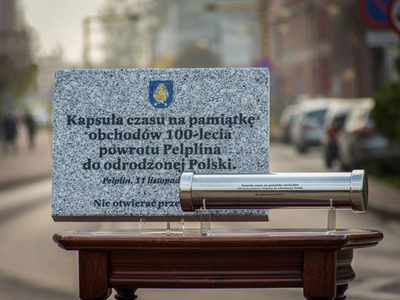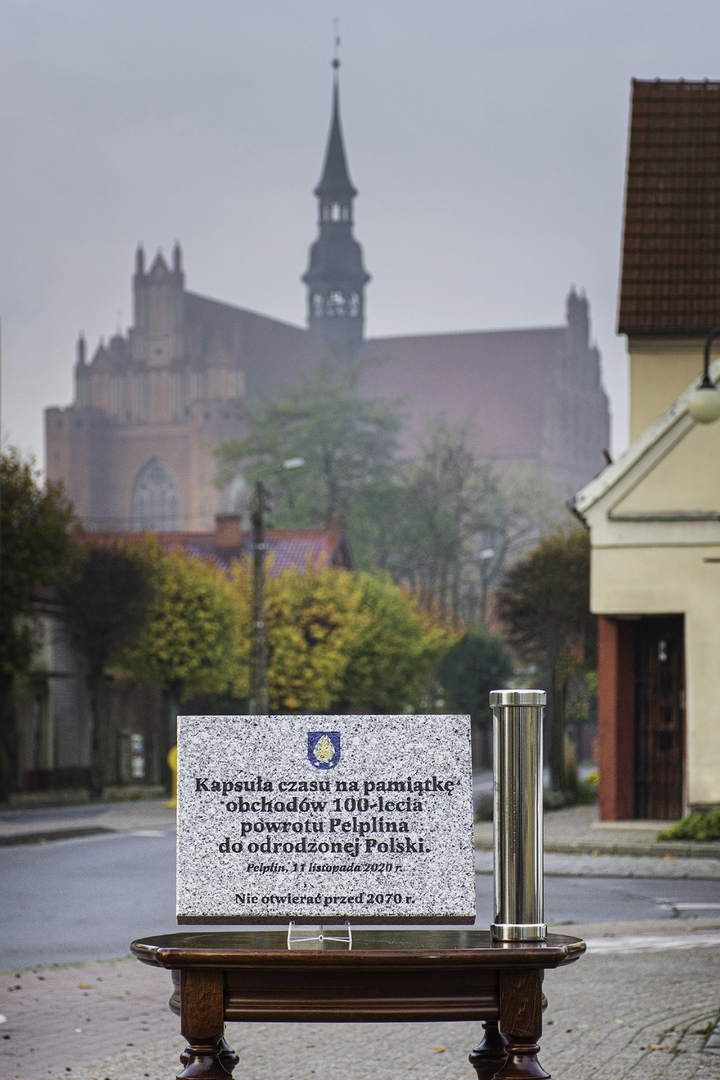 Samorząd Gminy Pelplin postanowił by 11 listopada 2020 r, symbolicznie zakończyć obchody Jubileuszu 100-lecia powrotu Pelplina do odrodzonej Polski, poprzez przygotowanie i zakopanie kapsuły czasu. Kapsuła zostanie umieszczona przy pomniku na Placu Wolności, podczas patriotycznych uroczyści związanych z obchodami Narodowego Święta Niepodległości. Miejsce jej umieszczenia zostanie oznaczone pamiątkową tablicą, wykonaną przez firmę MARMUREX z Lipinek Szlacheckich.