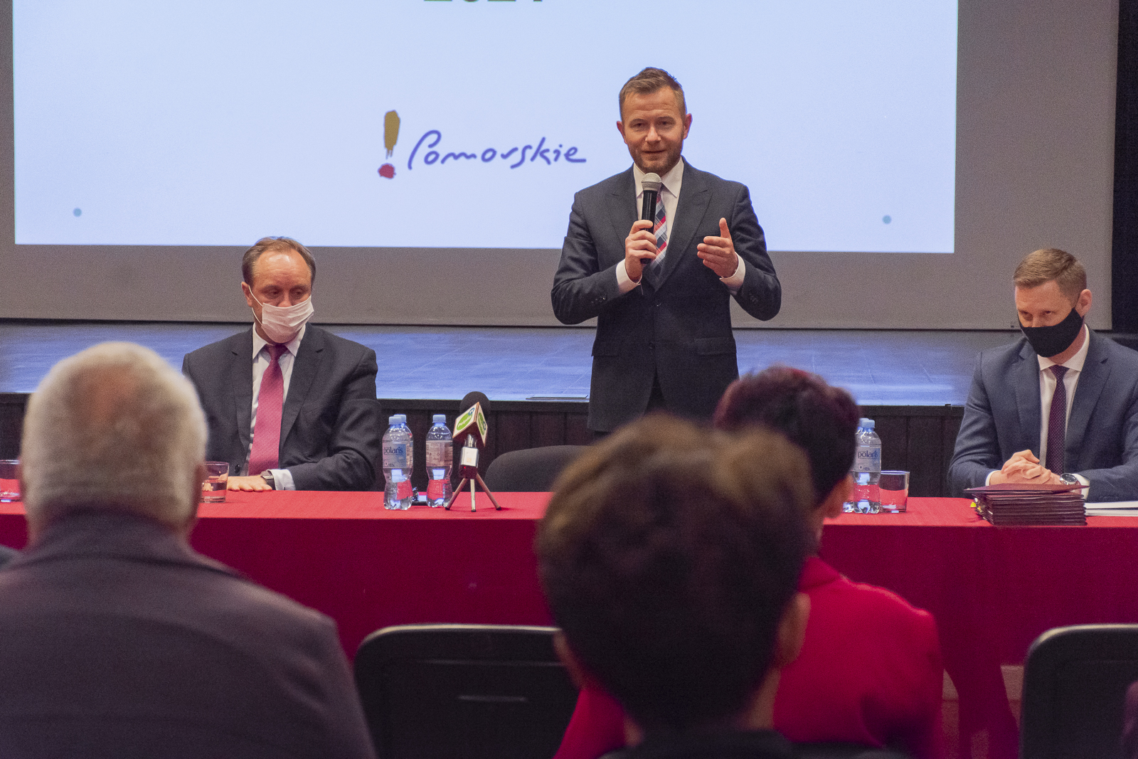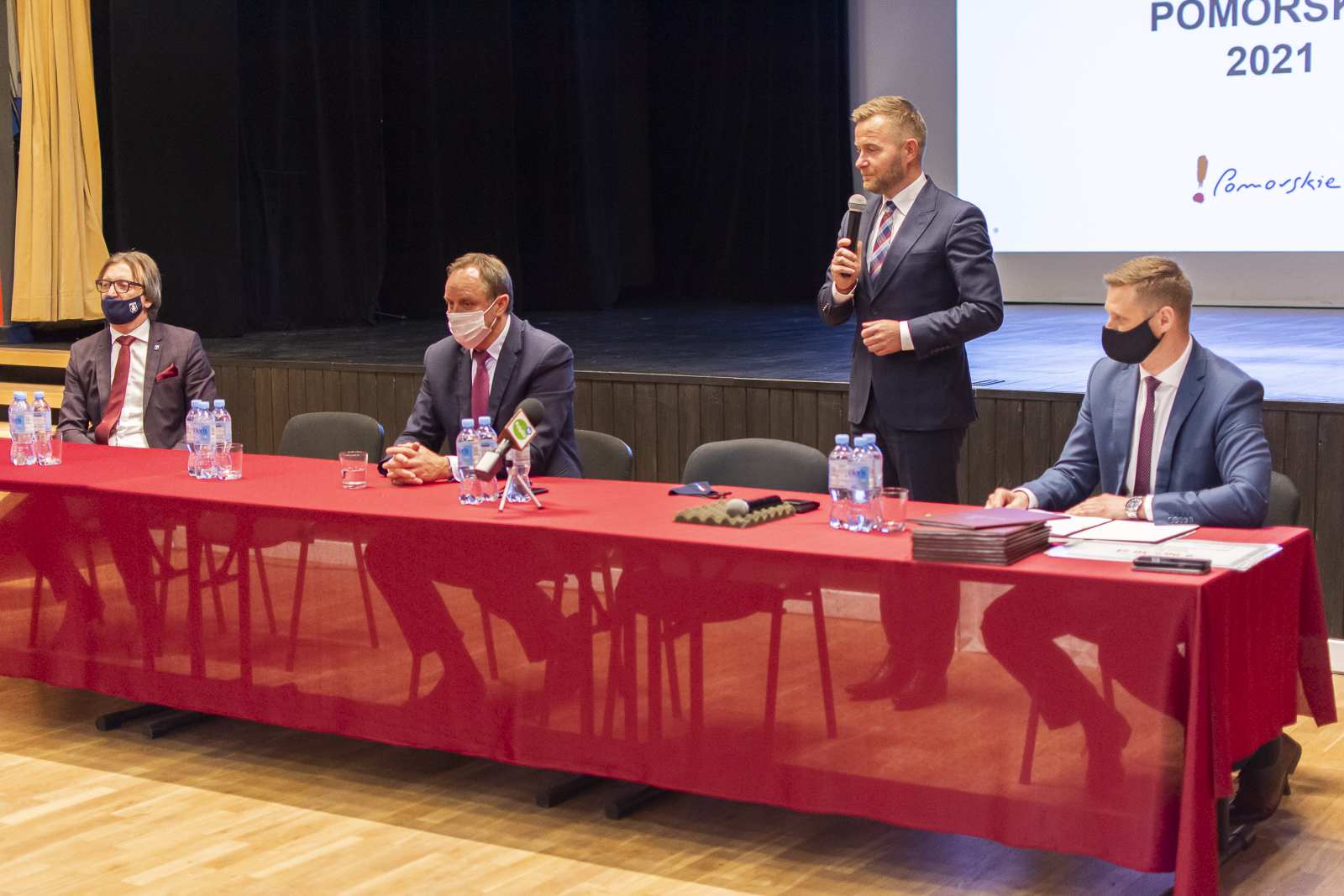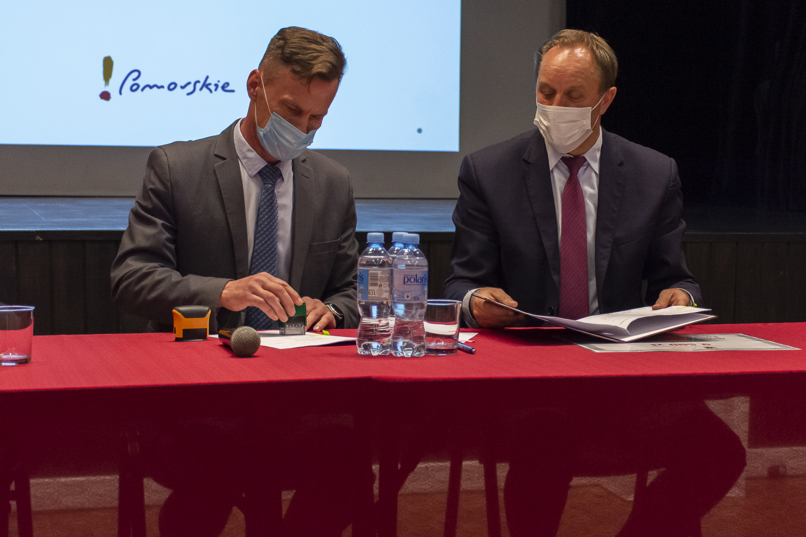 Zawsze bardzo chętnie gościmy sąsiednie samorządy oraz dbamy o dobre z nimi relacje. Stąd też, bardzo ucieszyłem się z propozycji, by uroczyste podpisanie umów o dofinasowanie odbyło się w Pelplinie. Dziękuję wszystkim włodarzom za obecność, a Zarządowi Województwa Pomorskiego za pozytywne rozpatrzenie wniosku Gminy Pelplin w ramach konkursu „Aktywne Sołectwo Pomorskie” – Mirosław Chyła Burmistrz Miasta i Gminy Pelplin
