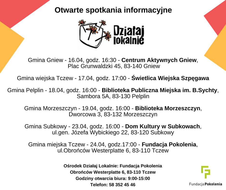Gmina miejska Tczew – 24.04, godz.17:00 – Fundacja Pokolenia, ul.Obrońców Westerplatte 6, 83-110 Tczew