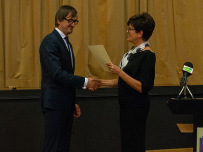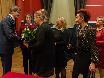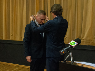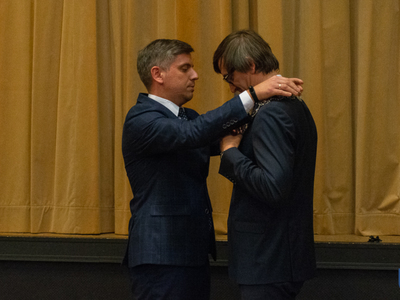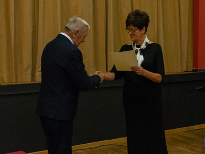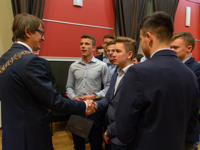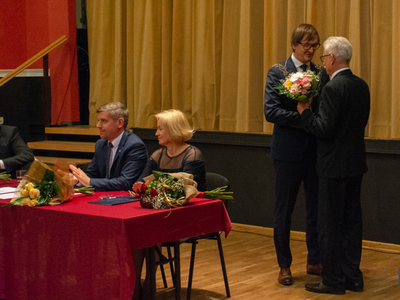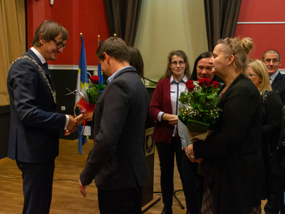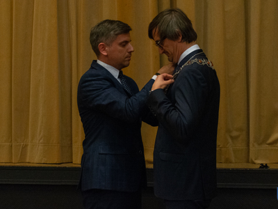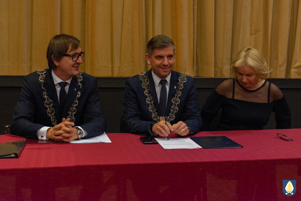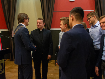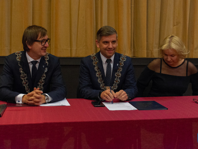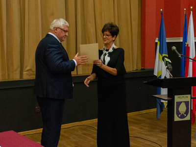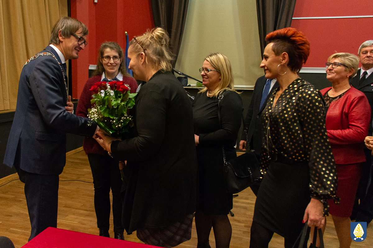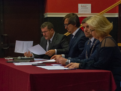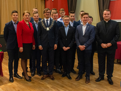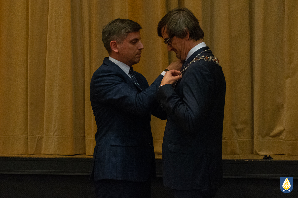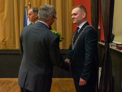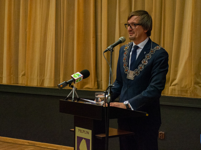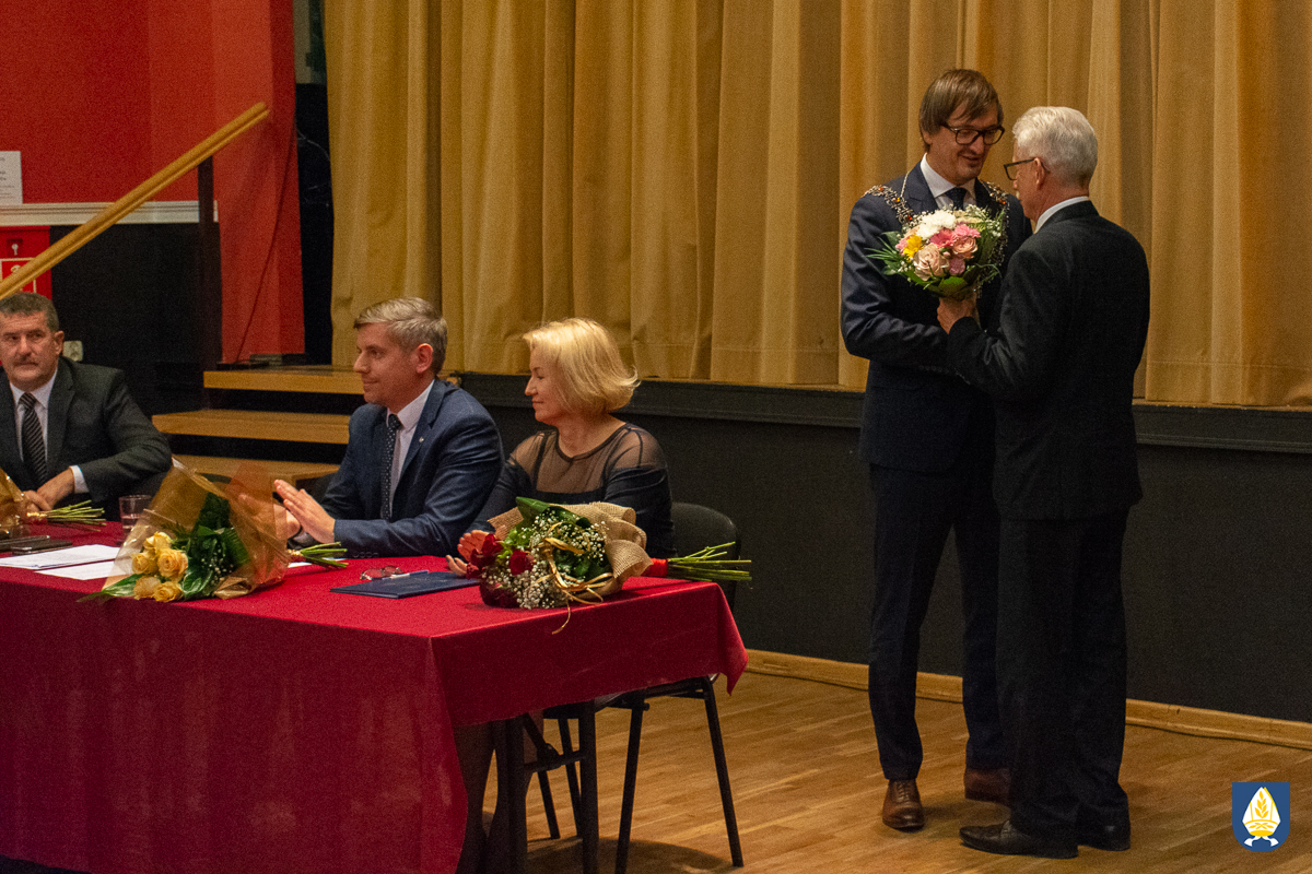 Pan Mirosław Chyła Burmistrz Miasta i Gminy Pelplin odebrał zaświadczenie o wyborze i złożył ślubowanie, a Pan Tomasz Czerwiński dotychczas Pełniący Funkcję Burmistrza z gratulacjami, symbolicznie przekazał insygnia władzy samorządowej – łańcuch Burmistrza oraz pieczęć.