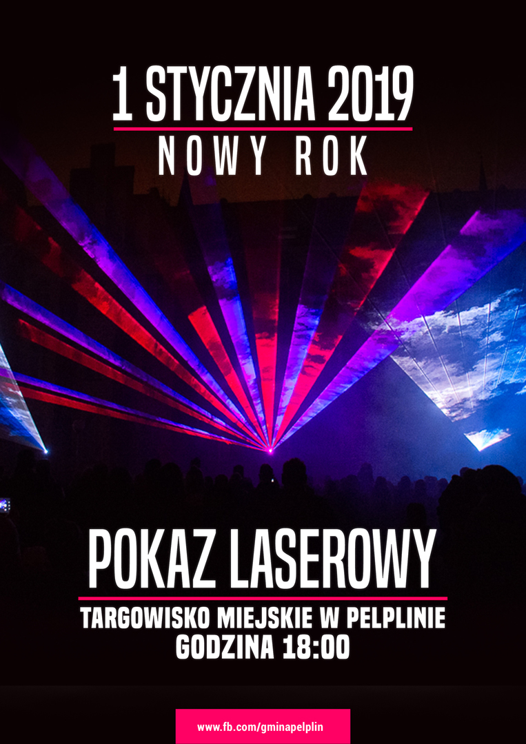 1 stycznia 2019 r. o godz. 18.00 na Targowisku Miejskim w Pelplinie odbędzie się noworoczny pokaz laserowy. Będzie to niezwykle ciekawe widowisko wykorzystujące najwyższej jakości systemy laserowe. Elementom przestrzennym, wyświetlanym przez aż 7 projektorów, będzie towarzyszyć dym sceniczny i muzyka. Wszystko to złoży się na niesamowicie rozbudowane widowisko, mogące zaskoczyć nawet najbardziej wymagającego widza.
