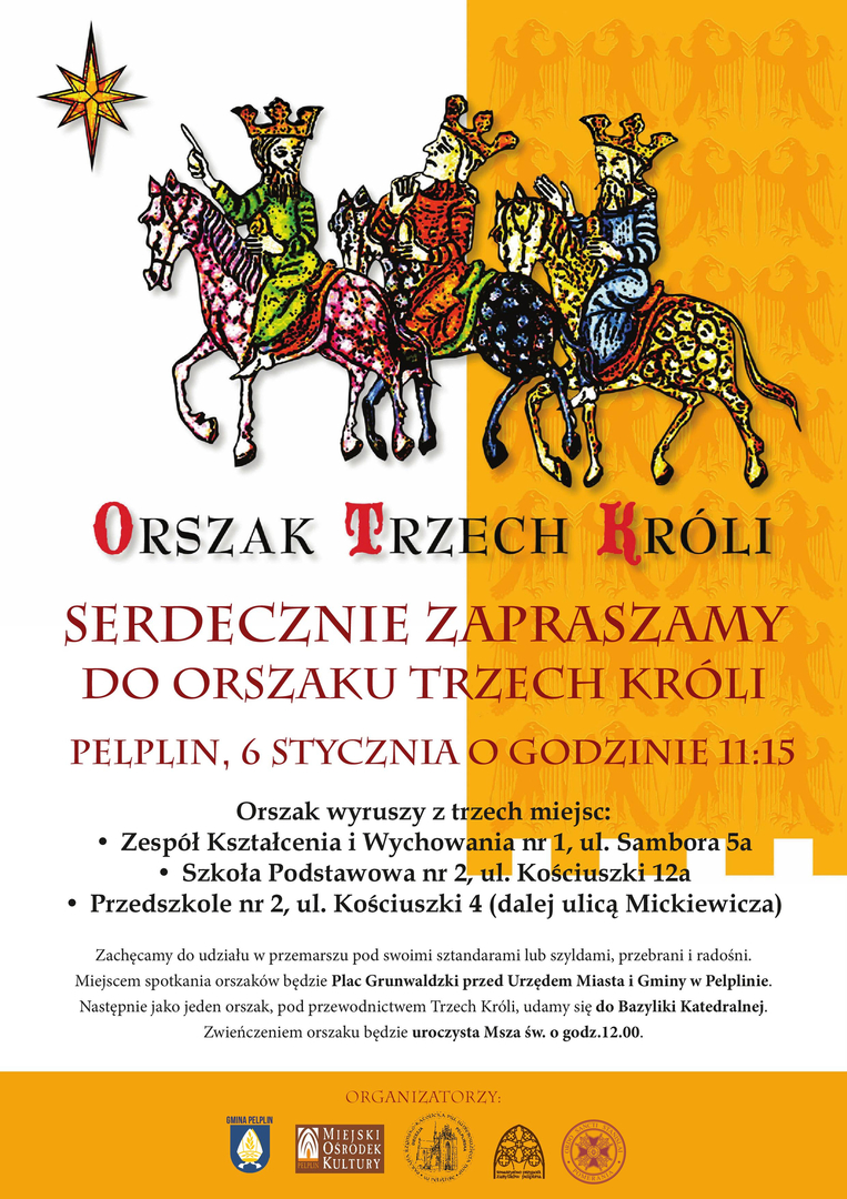 Serdecznie zapraszamy Państwa do udziału w Orszaku Trzech Króli, który będzie mieć miejsce 6 stycznia 2019 r. w Pelplinie.