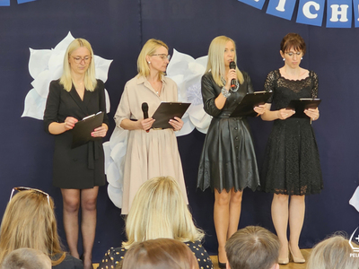 – Ten jubileusz nie mógłby się odbyć, gdyby nie wy, gdyby nie nasi uczniowie. Jest nas niewiele, ale wszyscy tutaj bardzo dzielnie pracowali, chodźcie, pokażcie się. – mówiła dyrektor Blandyna Stefańska.